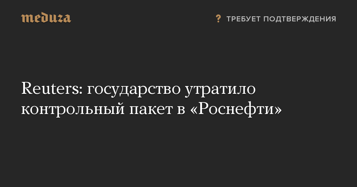 Reuters: государство утратило контрольный пакет в «Роснефти»