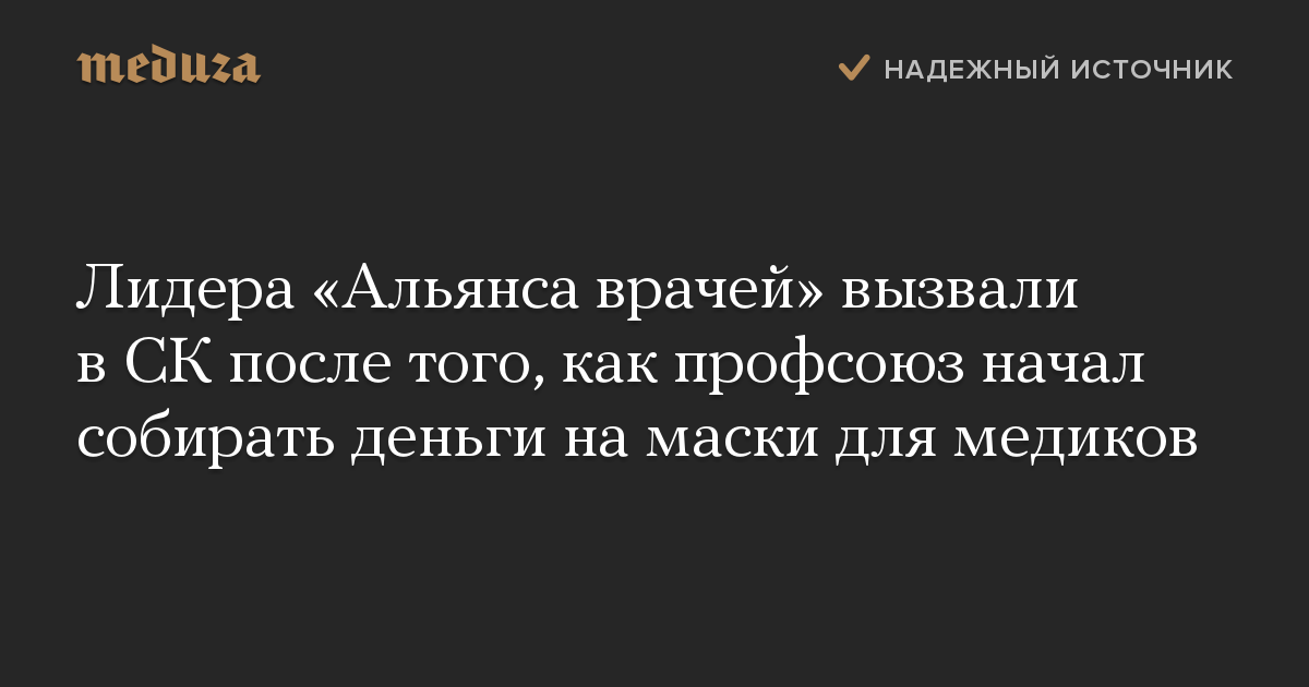 Лидера «Альянса врачей» вызвали в СК после того, как профсоюз начал собирать деньги на маски для медиков