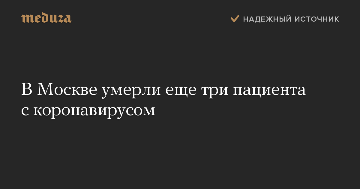 Еще три человека с подтвержденной коронавирусной инфекцией умерли в московских больницах, сообщает оперативный штаб.