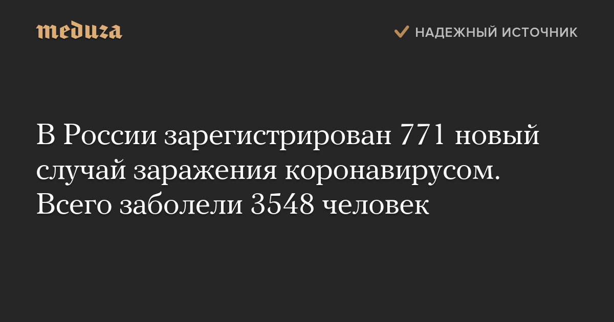 В России зарегистрирован 771 новый случай заражения коронавирусом. Всего заболели 3548 человек