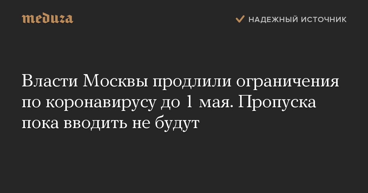 Власти Москвы продлили ограничения по коронавирусу до 1 мая. Пропуска пока вводить не будут