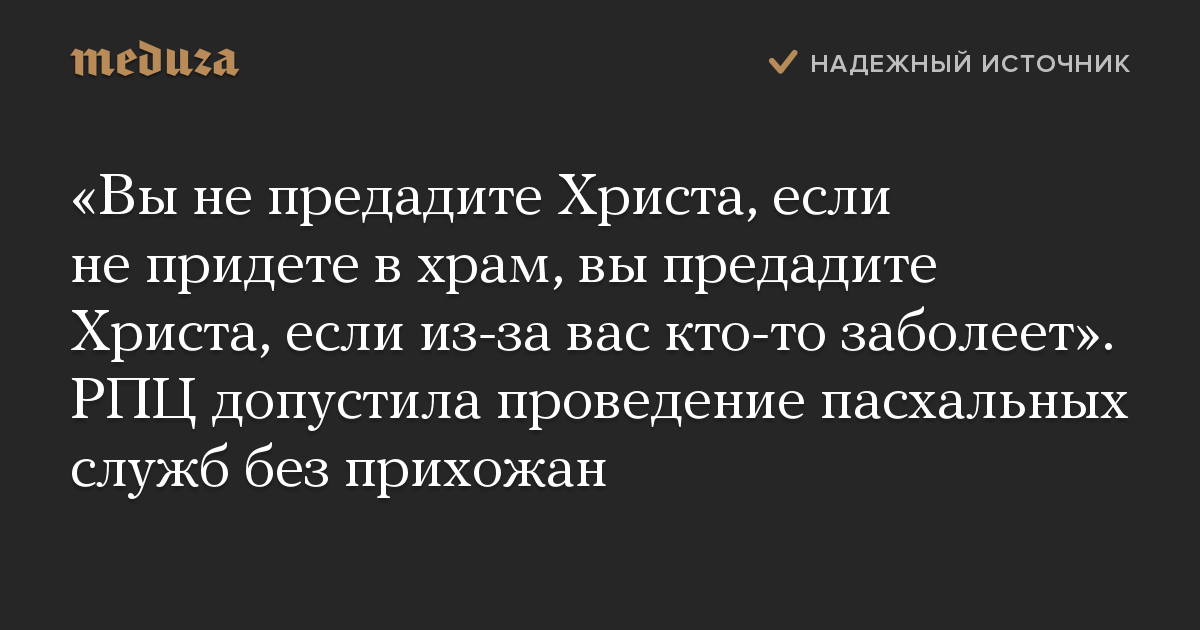 «Вы не предадите Христа, если не придете в храм, вы предадите Христа, если из-за вас кто-то заболеет». РПЦ допустила проведение пасхальных служб без прихожан