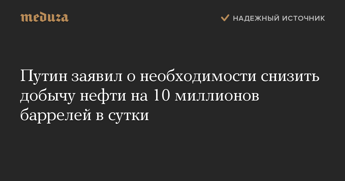 Путин заявил о необходимости снизить добычу нефти на 10 миллионов баррелей в сутки