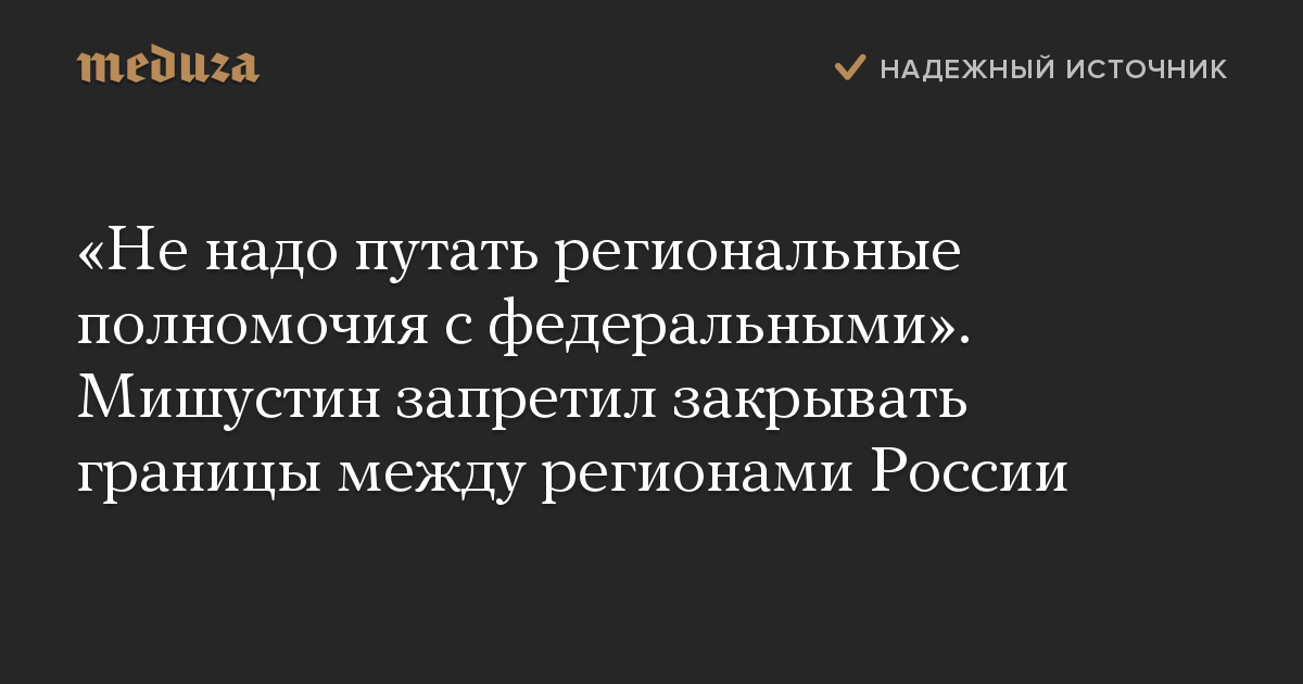 «Не надо путать региональные полномочия с федеральными». Мишустин запретил закрывать границы между регионами России