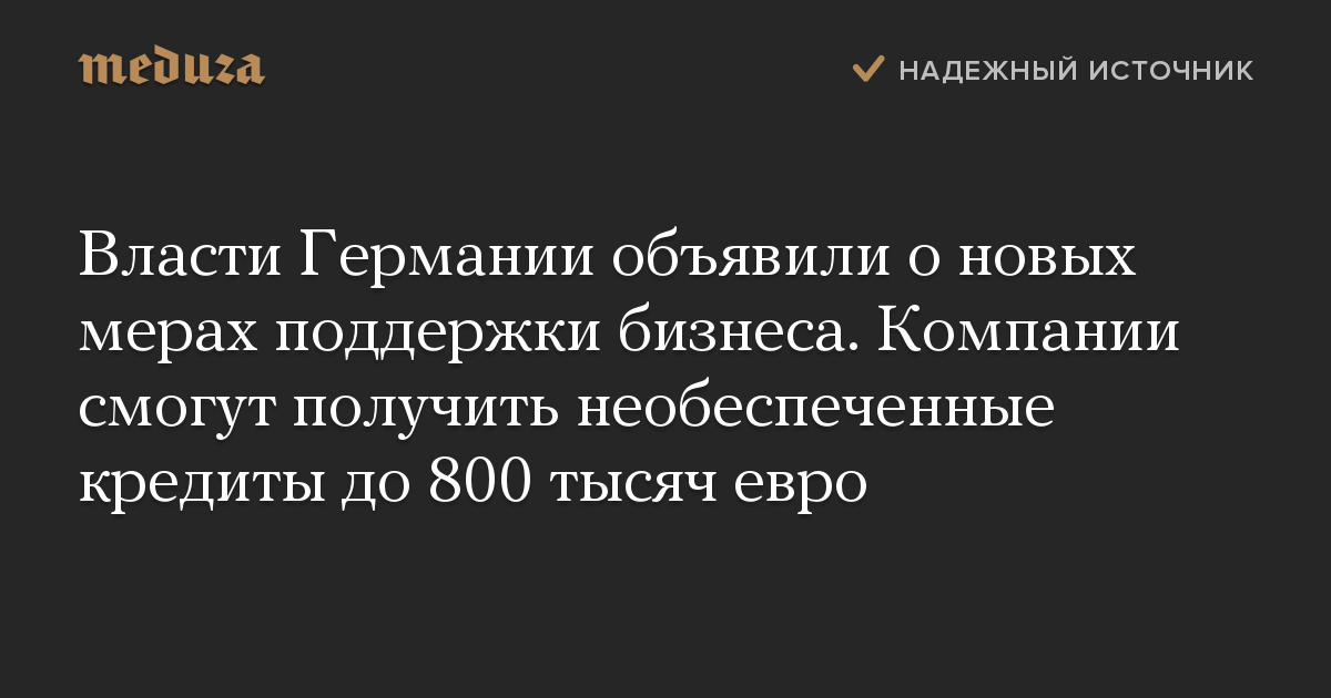 Власти Германии объявили о новых мерах поддержки бизнеса. Компании смогут получить необеспеченные кредиты до 800 тысяч евро