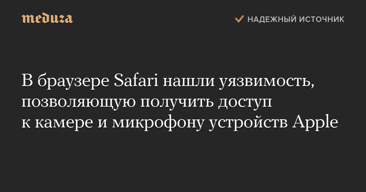 В браузере Safari нашли уязвимость, позволяющую получить доступ к камере и микрофону устройств Apple