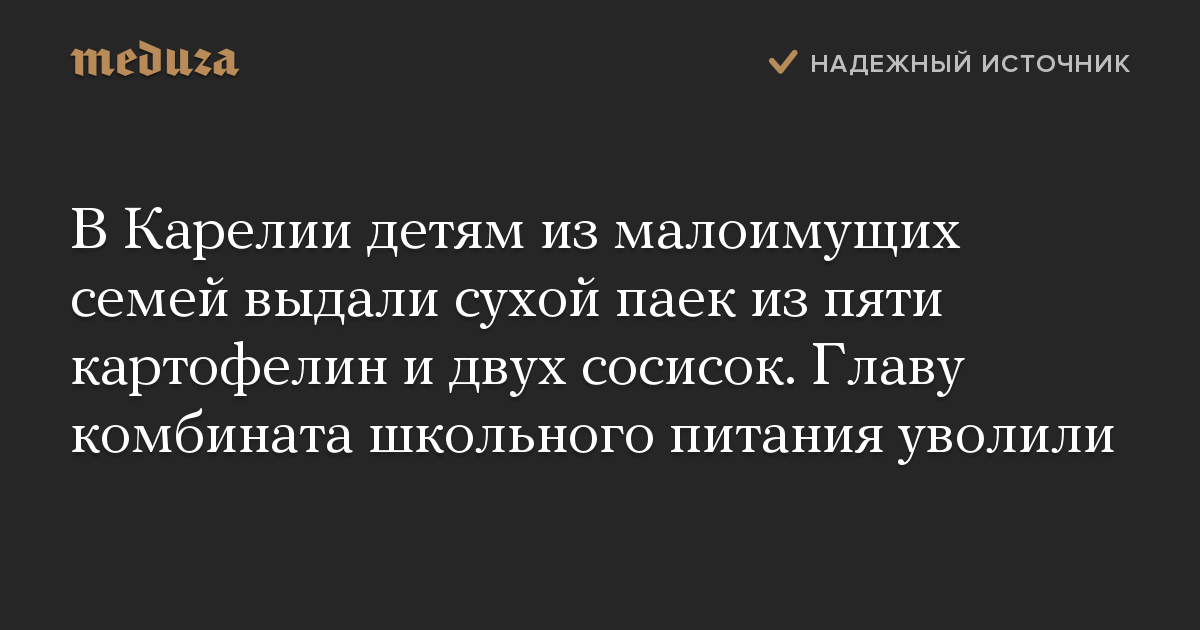 В Карелии детям из малоимущих семей выдали сухой паек из пяти картофелин и двух сосисок. Главу комбината школьного питания уволили