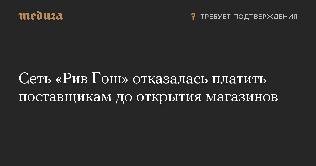 Сеть «Рив Гош» отказалась платить поставщикам до открытия магазинов