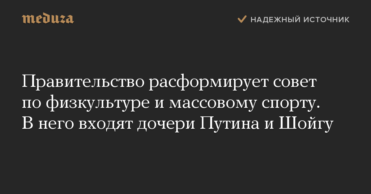 Правительство расформирует совет по физкультуре и массовому спорту. В него входят дочери Путина и Шойгу