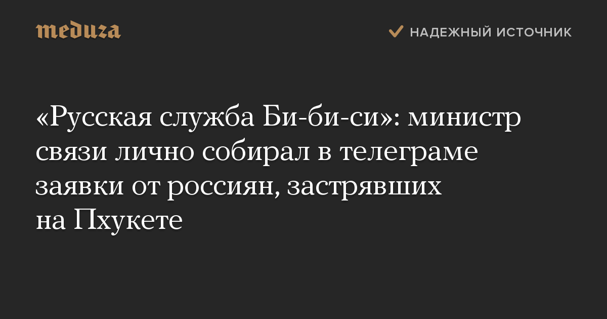 «Русская служба Би-би-си»: министр связи лично собирал в телеграме заявки от россиян, застрявших на Пхукете