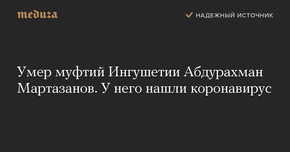 Абдурахману Мартазанову было 63 года. Его избрали главой духовного управления мусульман Ингушетии в июле 2019 года. До этого он около 20 лет занимал пост кадия (шариатского судьи).