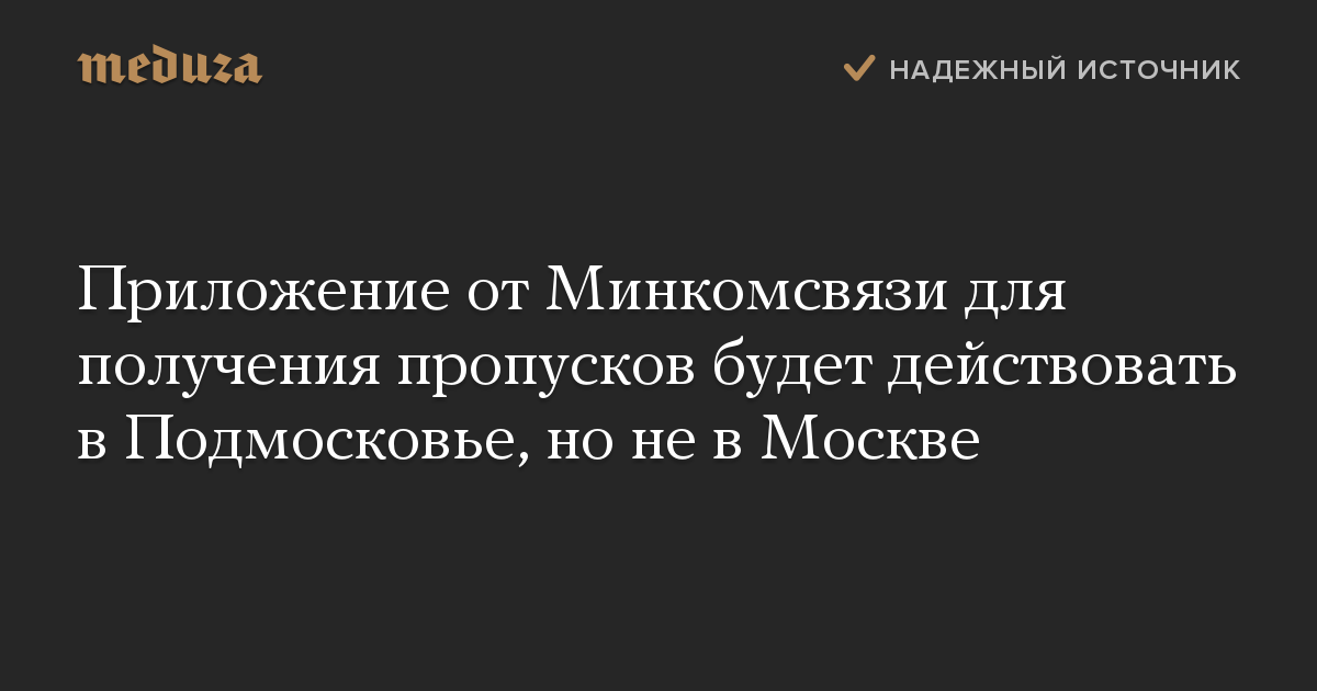 Приложение от Минкомсвязи для получения пропусков будет действовать в Подмосковье, но не в Москве