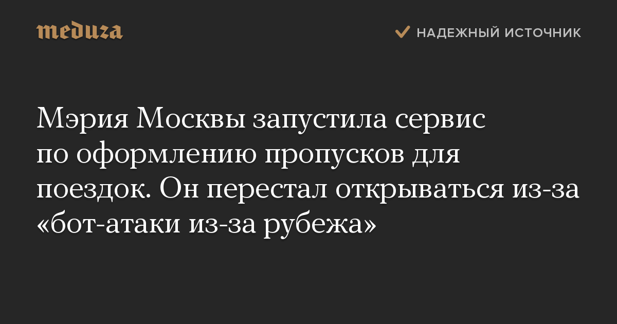 Мэрия Москвы запустила сервис по оформлению пропусков для поездок. Он перестал открываться из-за «бот-атаки из-за рубежа»