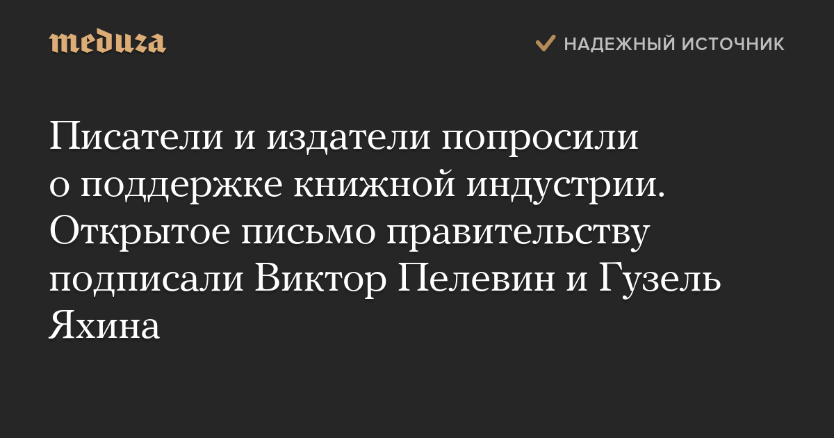 Писатели и издатели попросили о поддержке книжной индустрии. Открытое письмо правительству подписали Виктор Пелевин и Гузель Яхина