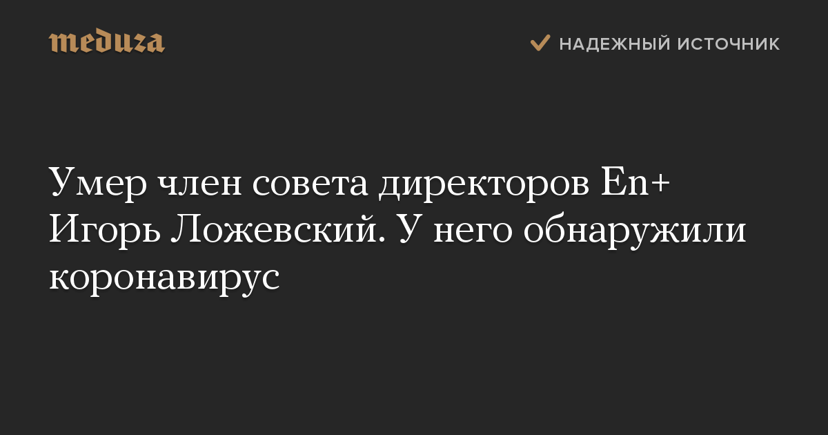 Умер член совета директоров En+ Игорь Ложевский. У него обнаружили коронавирус