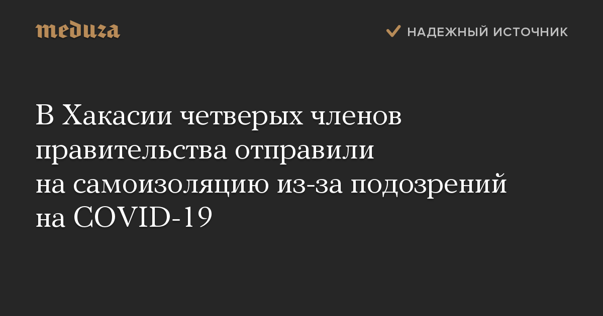 Четверых членов правительства республики Хакасия отправили на самоизоляцию из-за контактов с сотрудником одного из министерств региона, у которого заподозрили коронавирус.
