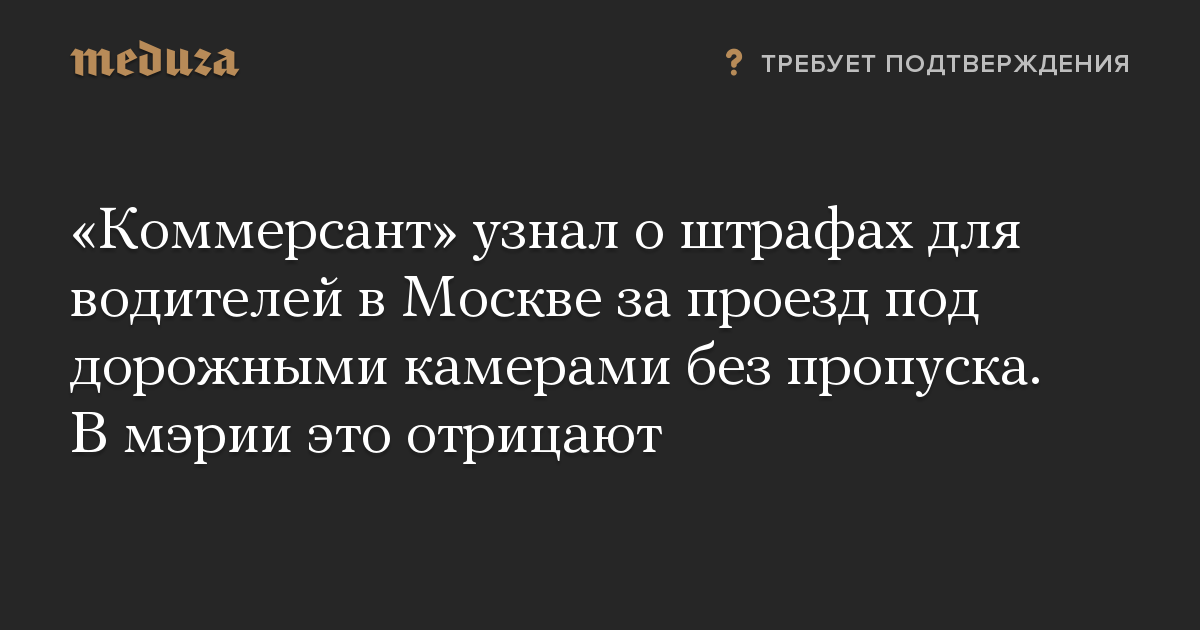 «Коммерсант» узнал о штрафах для водителей в Москве за проезд под дорожными камерами без пропуска. В мэрии это отрицают