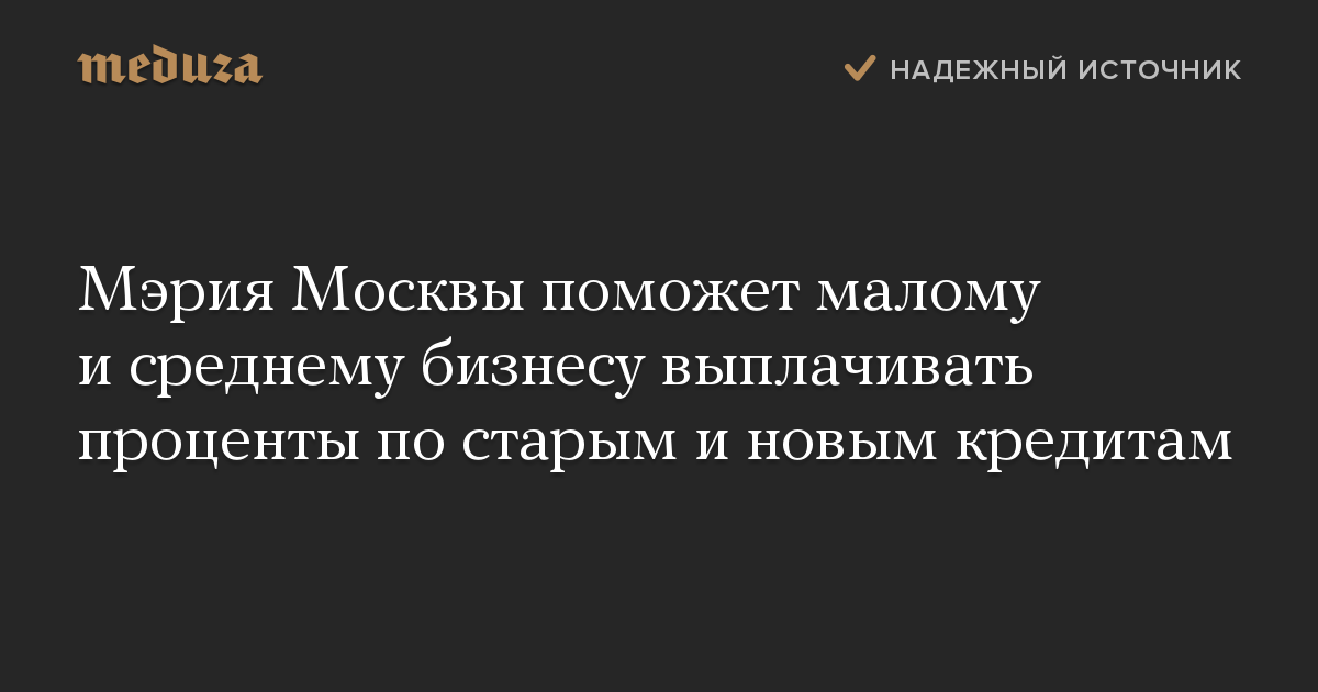 Мэрия Москвы поможет малому и среднему бизнесу выплачивать проценты по старым и новым кредитам