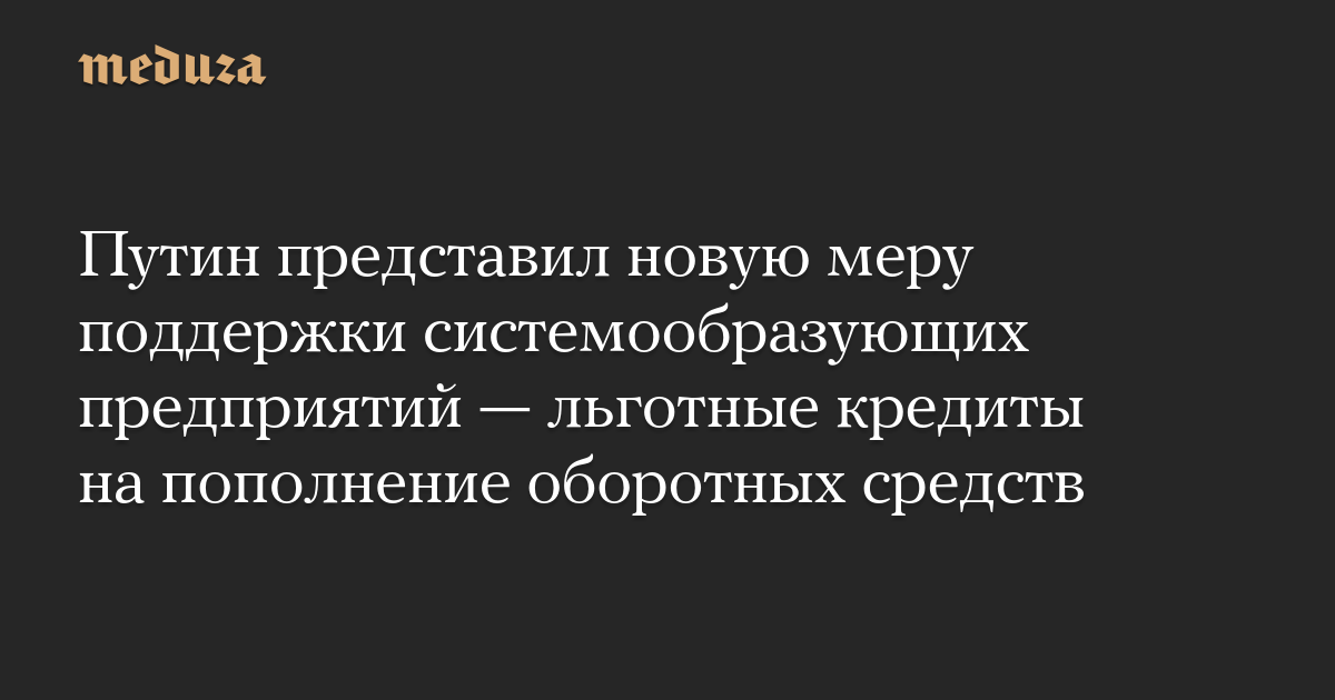 Путин представил новую меру поддержки системообразующих предприятий — льготные кредиты на пополнение оборотных средств