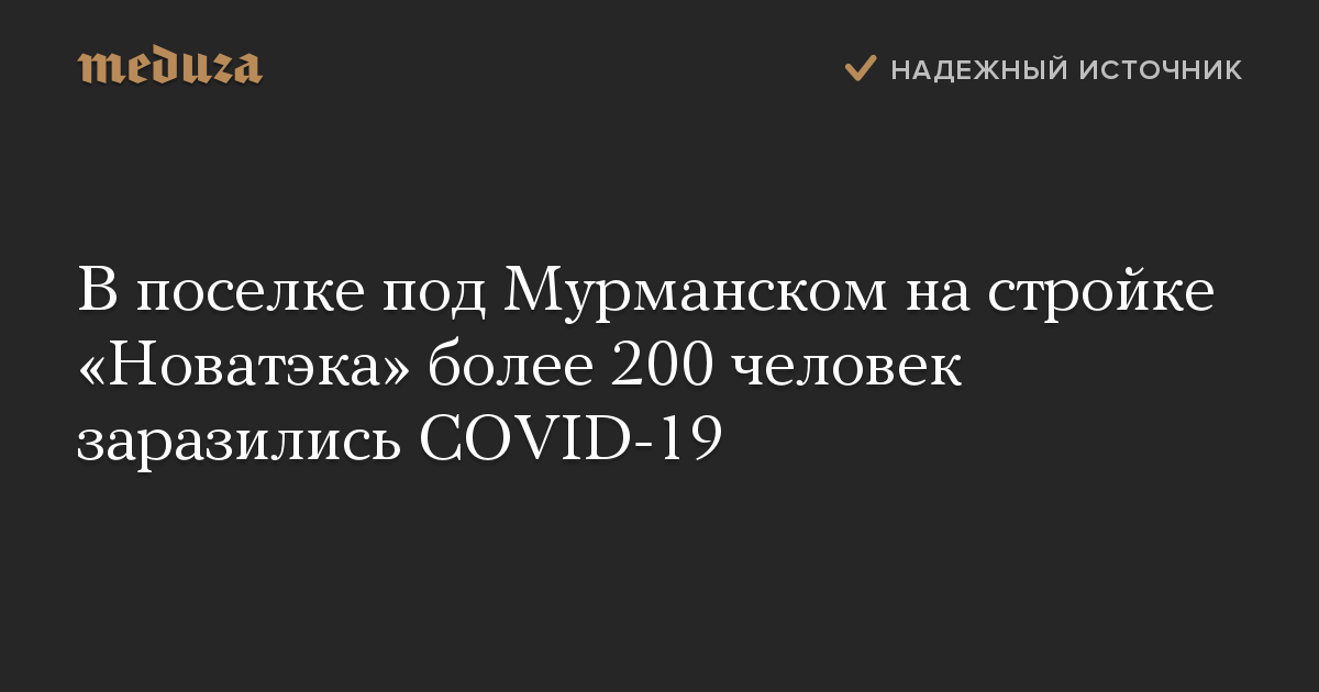 Основной очаг распространения COVID-19 зафиксирован в поселке Белокаменка Кольского района — на стройке центра крупнотоннажных морских сооружений компании «Новатэк». За сутки там заболели еще 125 человек, а всего — 206, пишет «Новая газета».