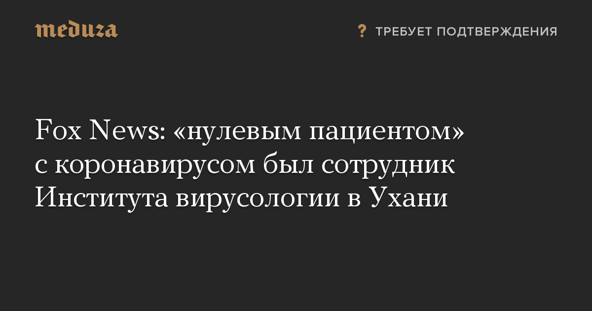 Fox News: «нулевым пациентом» с коронавирусом был сотрудник Института вирусологии в Ухани
