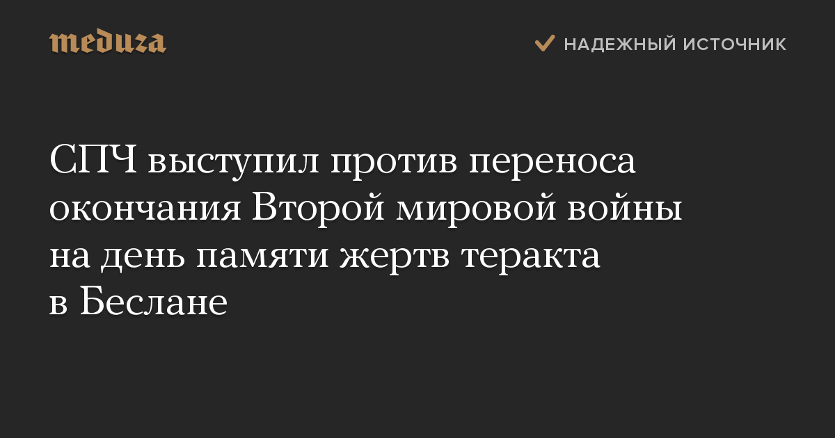 СПЧ выступил против переноса окончания Второй мировой войны на день памяти жертв теракта в Беслане