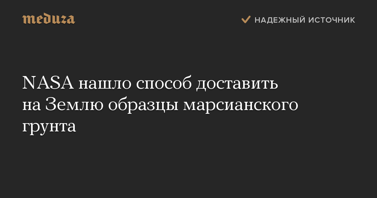 NASA нашло способ доставить на Землю образцы марсианского грунта