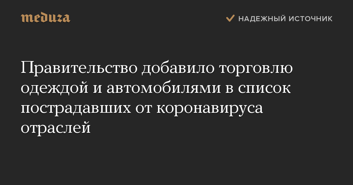 Правительство добавило торговлю одеждой и автомобилями в список пострадавших от коронавируса отраслей