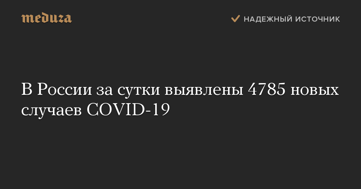 В России за сутки выявлены 4785 новых случаев заболевания COVID-19. Об этом сообщает оперативный штаб по борьбе с коронавирусом.