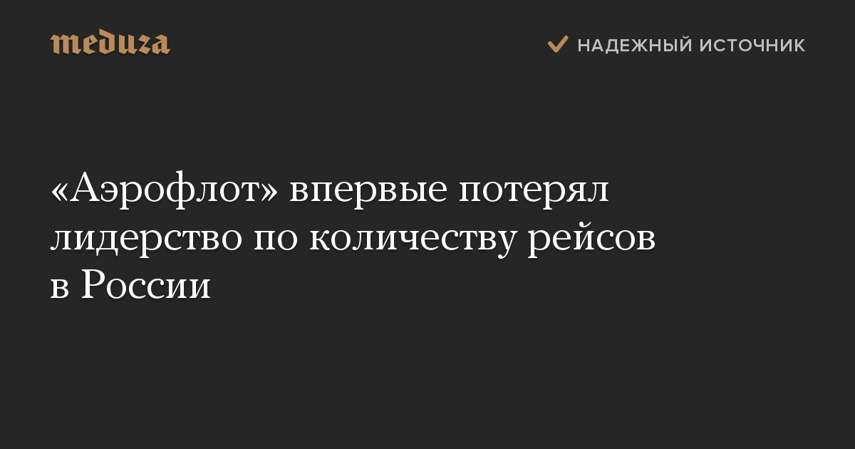 «Аэрофлот» впервые в истории перестал быть лидером в России по количеству рейсов, пишут «Ведомости».