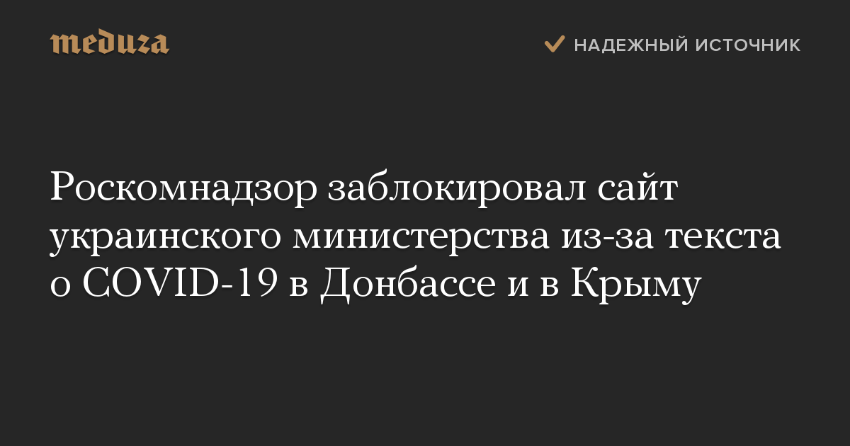 Роскомнадзор заблокировал сайт украинского министерства из-за текста о COVID-19 в Донбассе и в Крыму