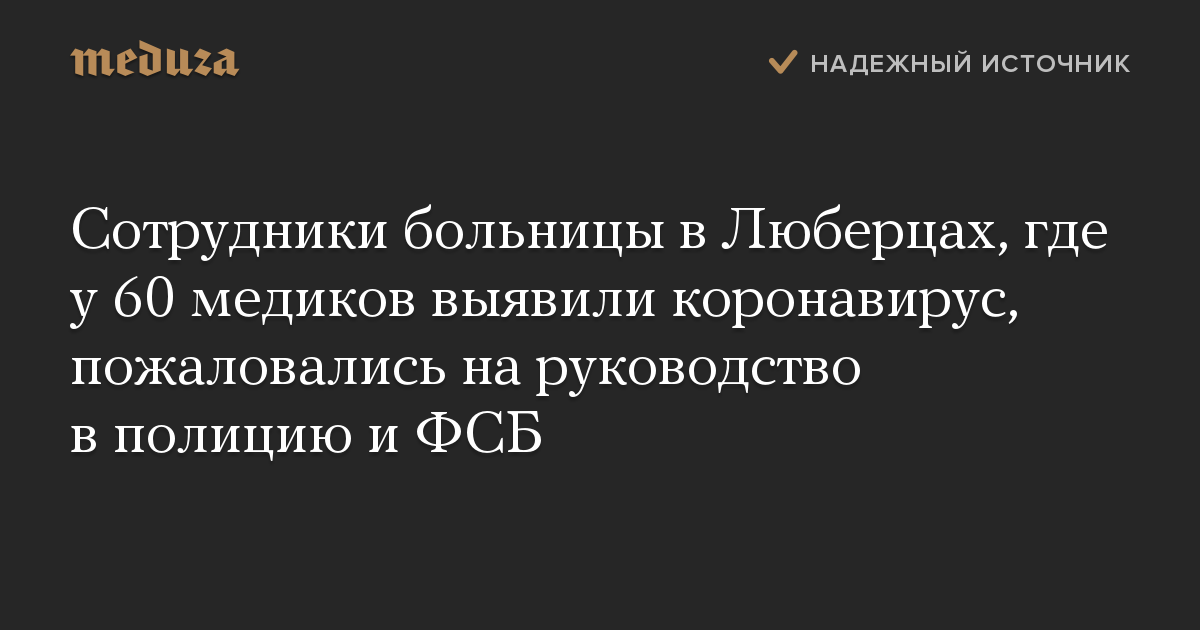 Сотрудники больницы в Люберцах, где у 60 медиков выявили коронавирус, пожаловались на руководство в полицию и ФСБ