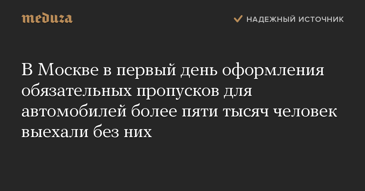 В Москве в первый день оформления обязательных пропусков для автомобилей более пяти тысяч человек выехали без них