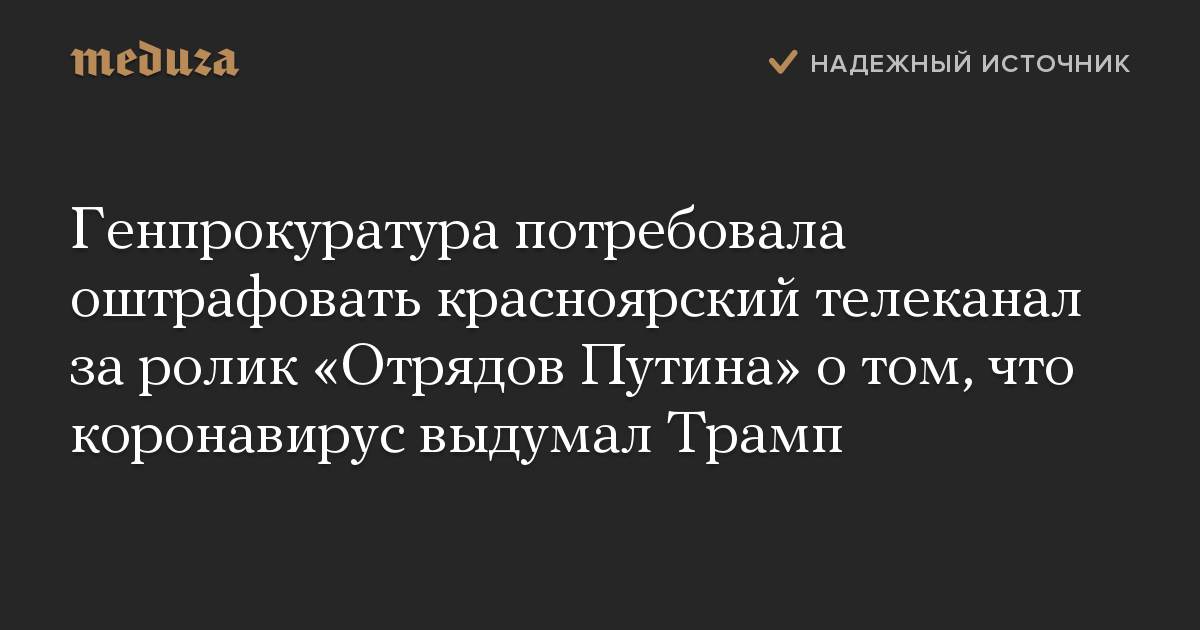 Генпрокуратура потребовала оштрафовать красноярский телеканал за ролик «Отрядов Путина» о том, что коронавирус выдумал Трамп