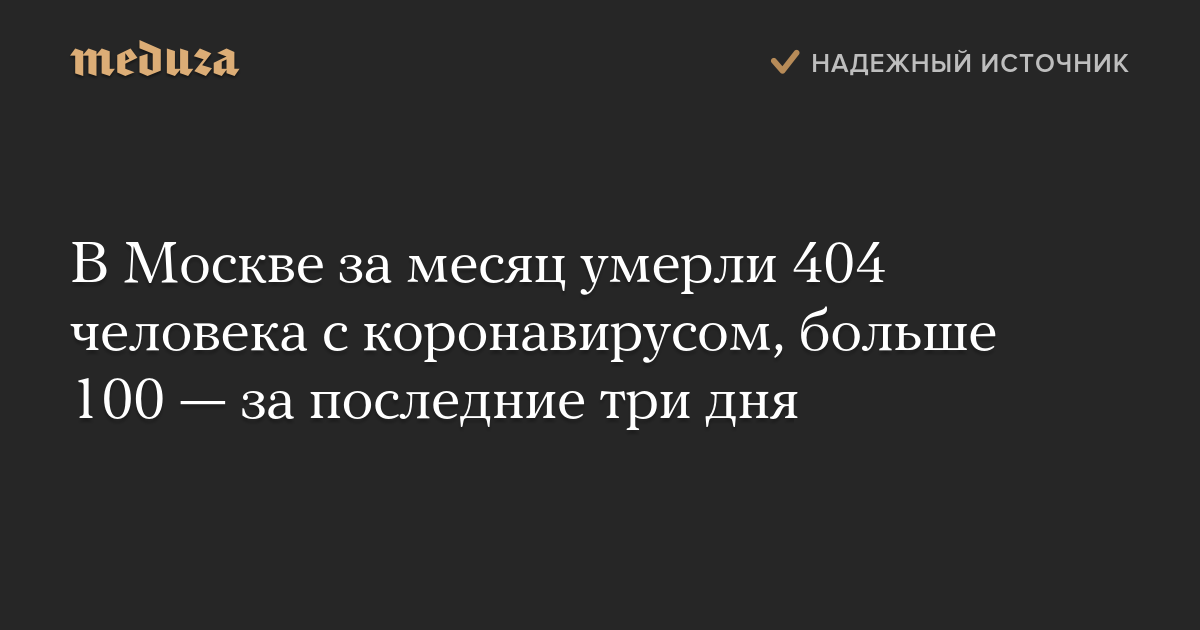 В Москве за месяц умерли 404 человека с коронавирусом, больше 100 — за последние три дня