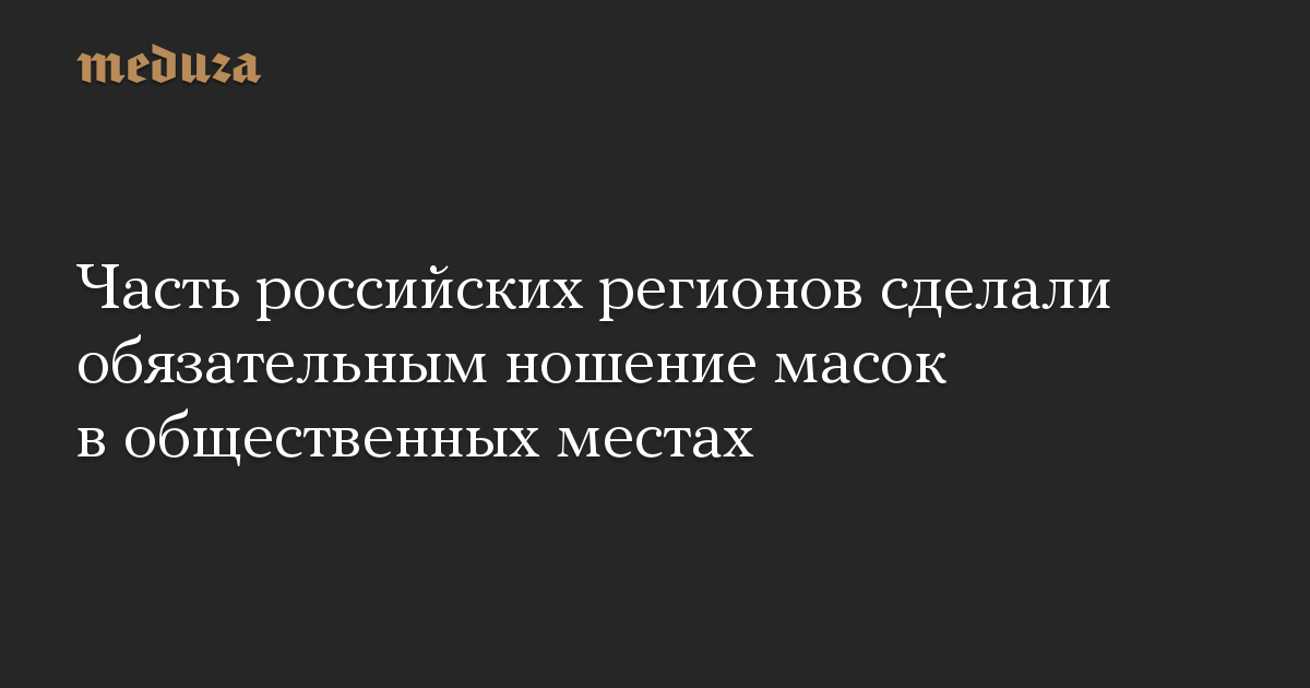 Ранее ношение масок уже сделали обязательным на нескольких территориях Кемеровской области (с 19 апреля), в Хабаровском крае (с 22 апреля), на Камчатке и в Ивановской области (с 24 апреля), а также в Башкирии (с 25 апреля).