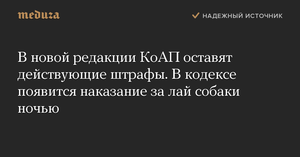 В новой редакции КоАП оставят действующие штрафы. В кодексе появится наказание за лай собаки ночью
