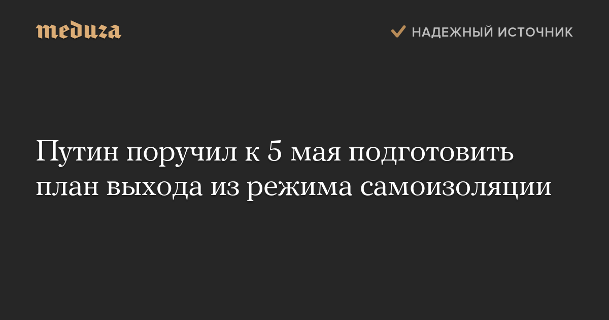 Путин поручил к 5 мая подготовить план выхода из режима самоизоляции