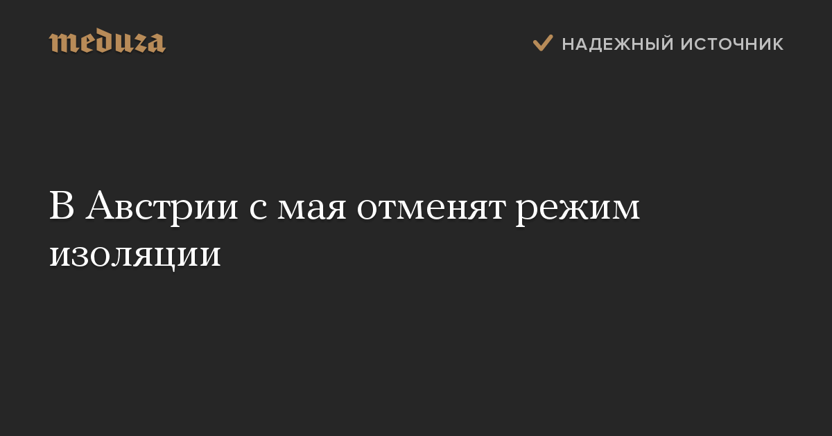 Режим изоляции, введенный в Австрии в связи с пандемией коронавируса, перестанет действовать с начала мая, сообщил министр здравоохранения страны Рудольф Аншобер.