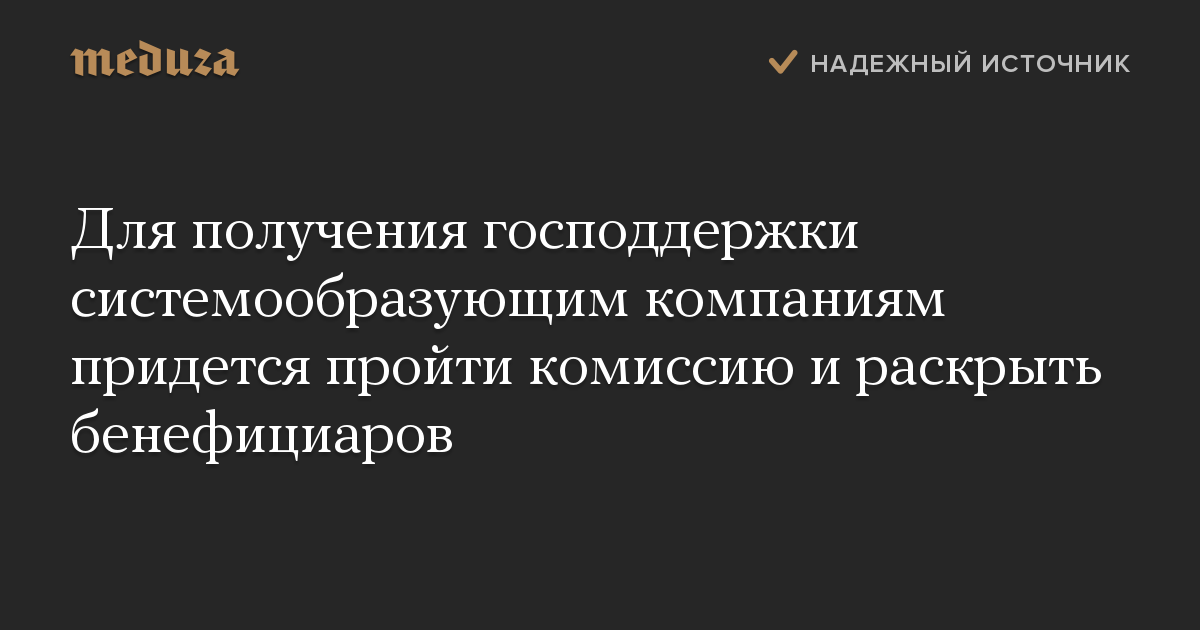 Для получения господдержки системообразующим компаниям придется пройти комиссию и раскрыть бенефициаров