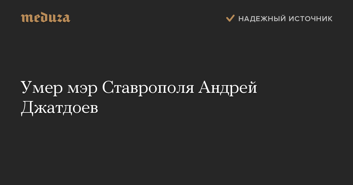 Глава Ставрополя Андрей Джатдоев умер в возрасте 57 лет. Об этом сообщил в инстаграме губернатор Ставропольского края Владимир Владимиров.