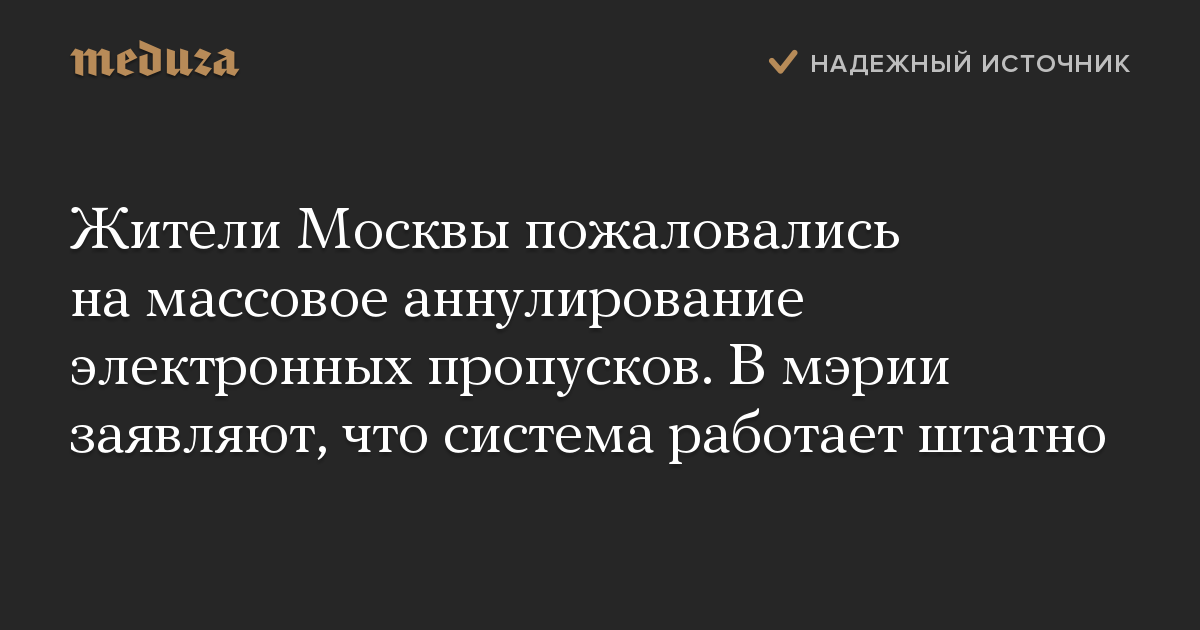 Жители Москвы пожаловались на массовое аннулирование электронных пропусков. В мэрии заявляют, что система работает штатно