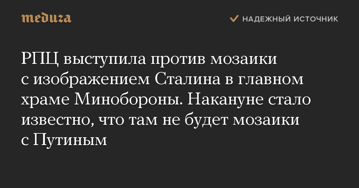 РПЦ выступила против мозаики с изображением Сталина в главном храме Минобороны. Накануне стало известно, что там не будет мозаики с Путиным