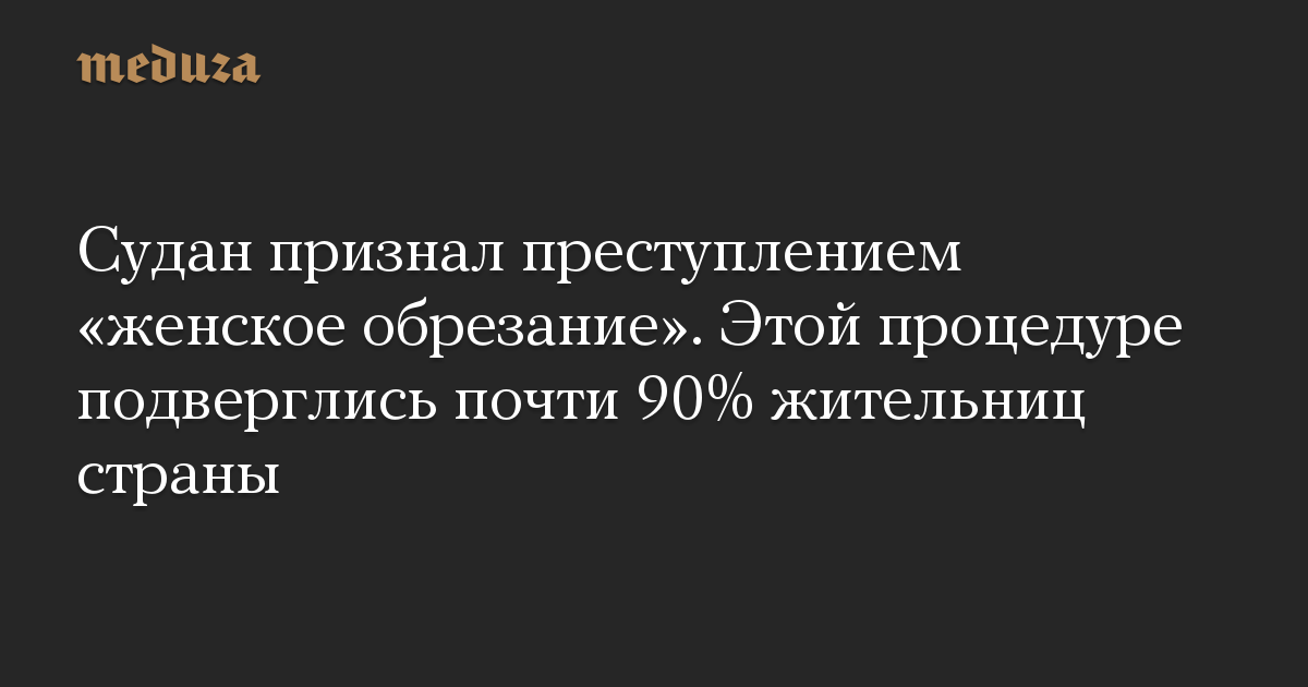 Парламент Судана ввел уголовное наказание за проведение «женского обрезания». Теперь за это предусмотрено до трех лет тюрьмы и штраф, сообщает Reuters.