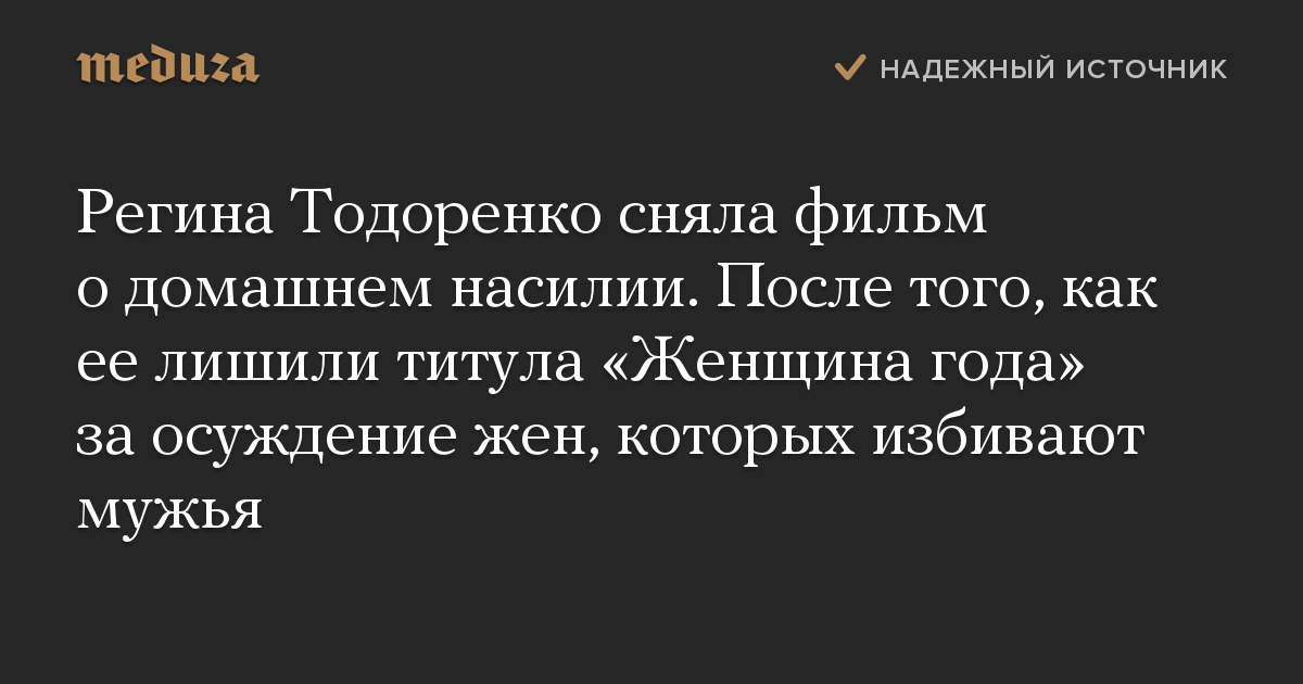 Регина Тодоренко сняла фильм о домашнем насилии. После того, как ее лишили титула «Женщина года» за осуждение жен, которых избивают мужья