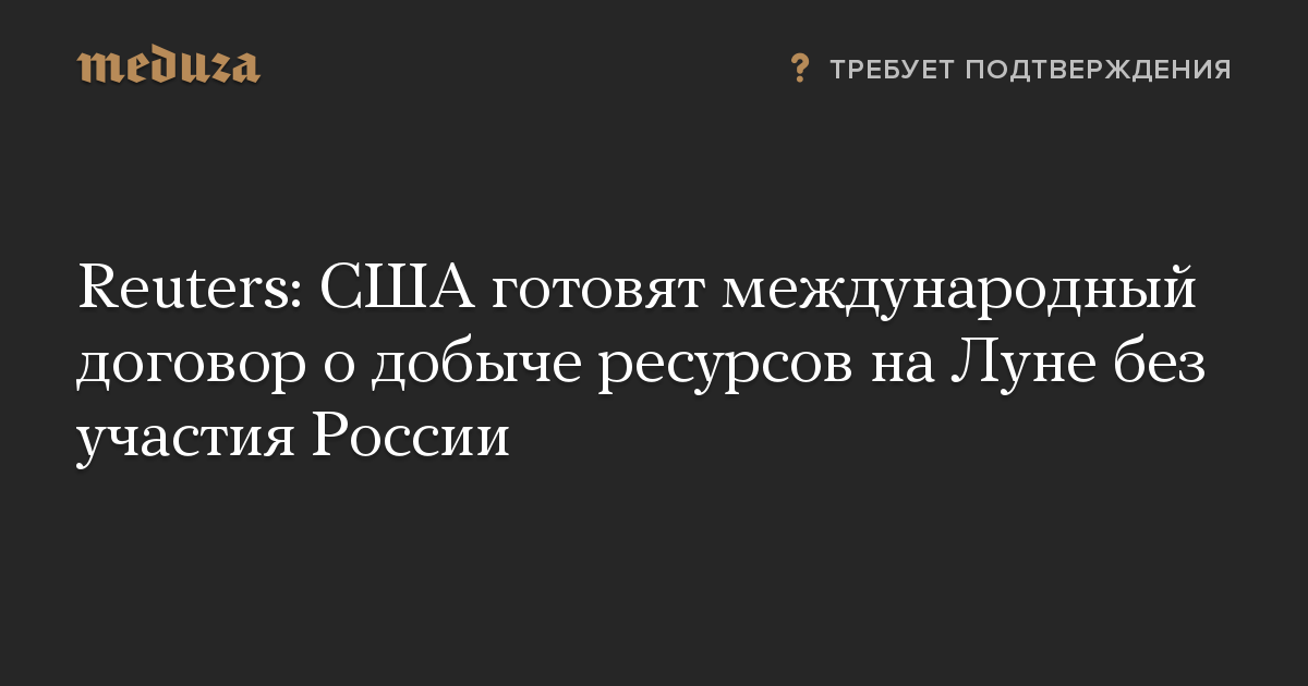 Reuters: США готовят международный договор о добыче ресурсов на Луне без участия России