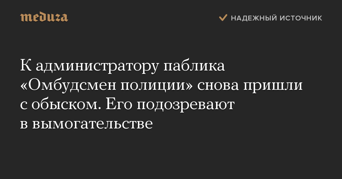 К администратору паблика «Омбудсмен полиции» снова пришли с обыском. Его подозревают в вымогательстве
