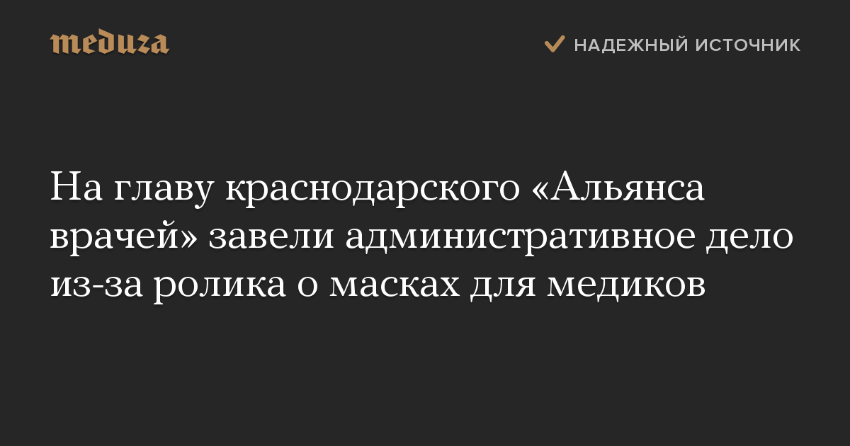На главу краснодарского «Альянса врачей» завели административное дело из-за ролика о масках для медиков