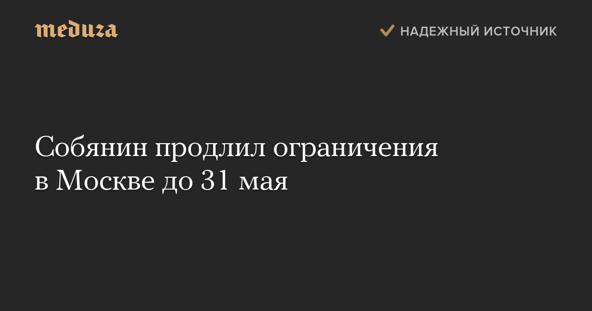 Собянин продлил ограничения в Москве до 31 мая
