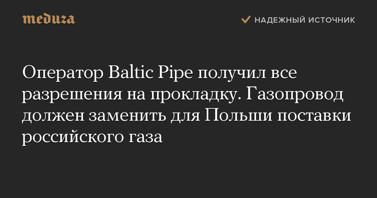 Оператор Baltic Pipe получил все разрешения на прокладку. Газопровод должен заменить для Польши поставки российского газа